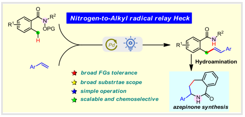 Du,Yu-jia?, Sheng, Xia-xin?, Tang, Lu-ning, Chen, Jia-ming, Liu, Guo-ying, Hu, Hao, Yang, Sen*, Zhu Lei*, and Chen, Ming.*Accessing Benzoazepine Derivatives via Photoinduced Radical Relay Formal [5+2] of Amide/Alkyne Enabled by Palladium Catalysis. Org. Lett. 2024, 26, 2662-2667.
