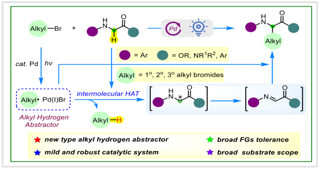Yang, Sen.; Hu, Hao.; Li, Jun-hua and Chen, Ming.* Direct Alkylation of Glycine Derivatives via Photoinduced Palladi-um Catalysis, Utilizing Intermolecular Hydrogen Atom Transfer Mediated by Alkyl Radicals. ACS Catalysis.2023, 13, 15652?15662. DOI:10.1021/acscatal.3c04075.