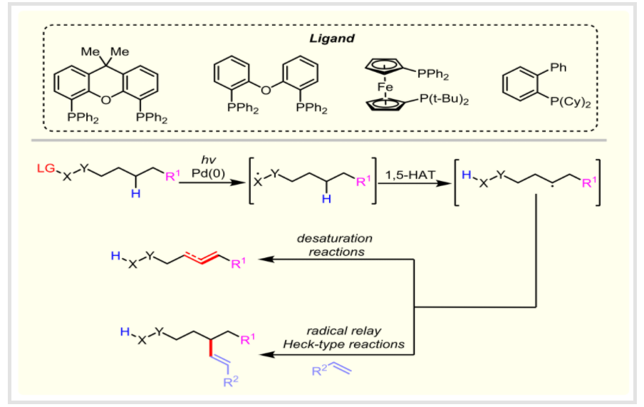 Tang Lu-ning, Miao Jia-cheng, and Chen Ming*. Recent advances in Photoinitiated Pd-Catalyzed Desaturation and Heck-Type Reactions via 1,5-Hydrogen Atom Transfer. (Feature Article)Chem. Commun.2025, 61, 4621-4629.