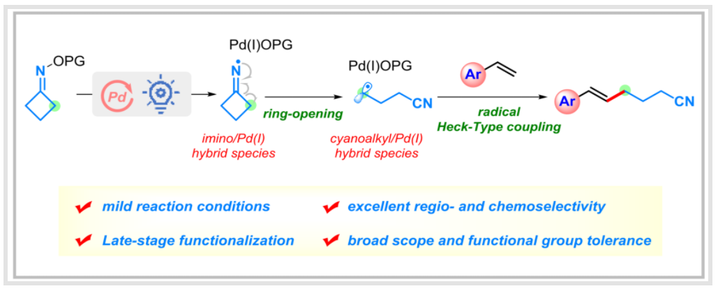 Yang, Sen.;+, Cai, Sha-sha.;+, Li, Jun-hua andChen Ming.*Photoinduced Palladium -Catalyzed Radical Heck-Type Coupling of Cyclobutanone Oxime Esters with Vinyl Arenes.J. Org. Chem. 89, 7243-7254.