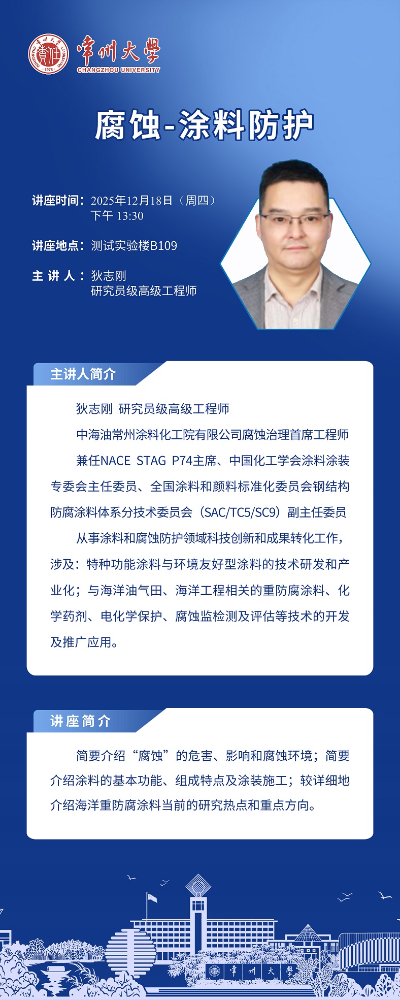 【學術報告】12月18日學術報告——中海油常州涂料化工院 狄志剛 研究員級高級工程師、周如東 高級工程師